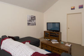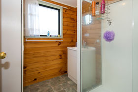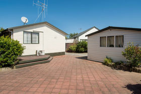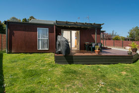 The rear home is a cute three bedroom sunshine home built in 2004. Solid and modern with timber walls, decking, paved patio and gardens.